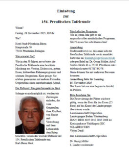 Am 18. Oktober hat die Landesgruppe Baden-Württemberg der Landsmannschaft Ostpreußen einen neuen Vorstand gewählt: